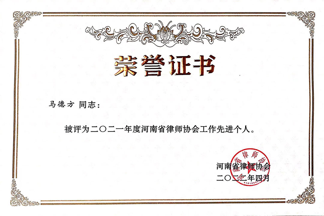 为深入贯彻落实习近平总书记关于律师工作的重要指示精神,团结引领广大律师始终坚持人民律师为人民,持续推进律师队伍健康发展,汇聚起建设法治河南、平安河南的坚实力量,以优异成绩迎接党的二十大胜利召开,河南省律师行业党委、河南省律师协会召开于近日成功召开河南省律师行业2021年度先进集体、先进个人及优秀工作成果表彰大会。因疫情原因,本次表彰大会采取线上线下相结合的方式,我所全程参加线上会议。我所合伙人律师马德方被评为“二〇二一年度河南省律师协会工作先进个人”。