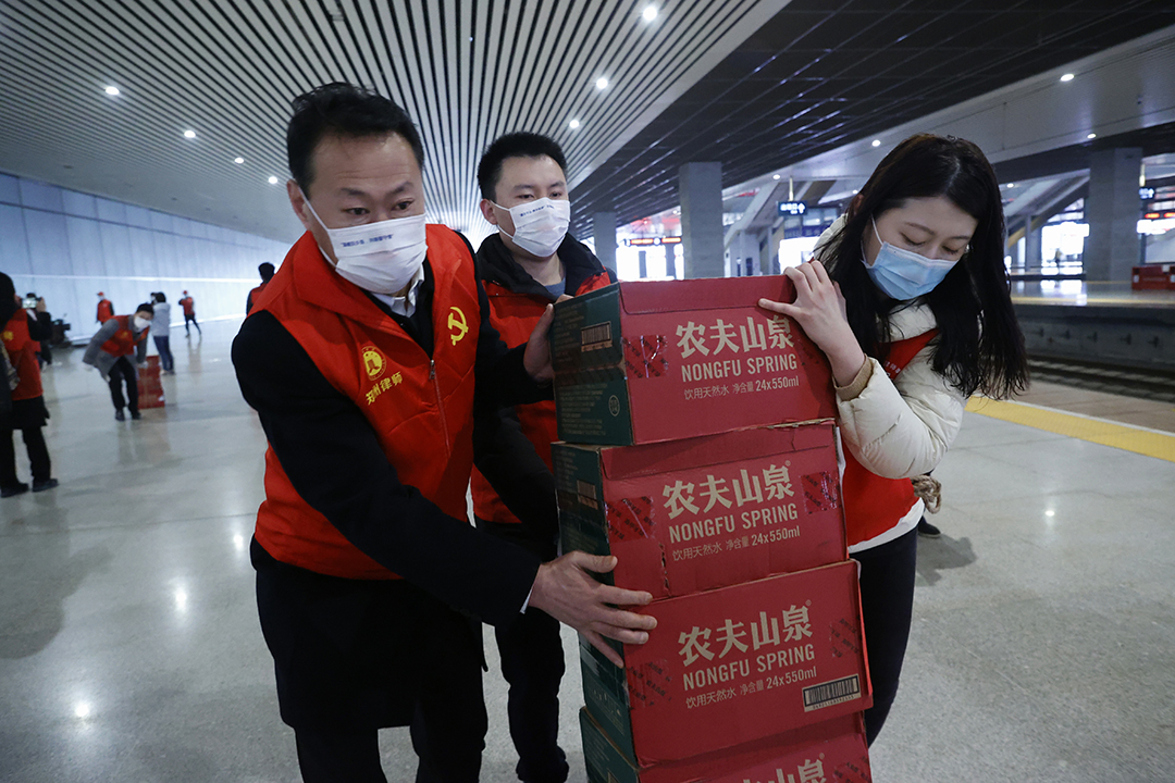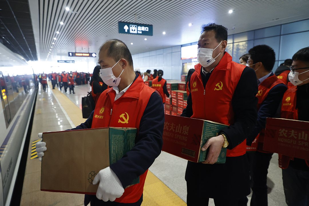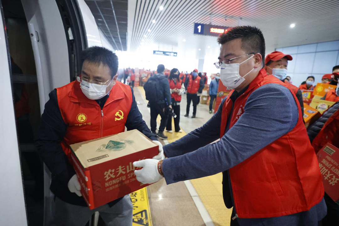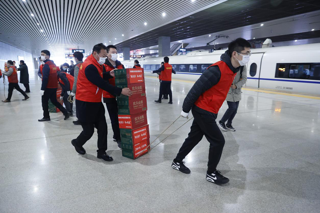 3月24日凌晨6时,暮色渐退,黎明将至,辰中所志愿律师在主任支合、执行主任杨琛的带领下早已在郑州东站西广场集结完毕,与其他志愿者汇合,经由工作人员安排后进入站台,按照要求将河南省筹集的抗疫援助物资装进驶往东北的高铁列车。