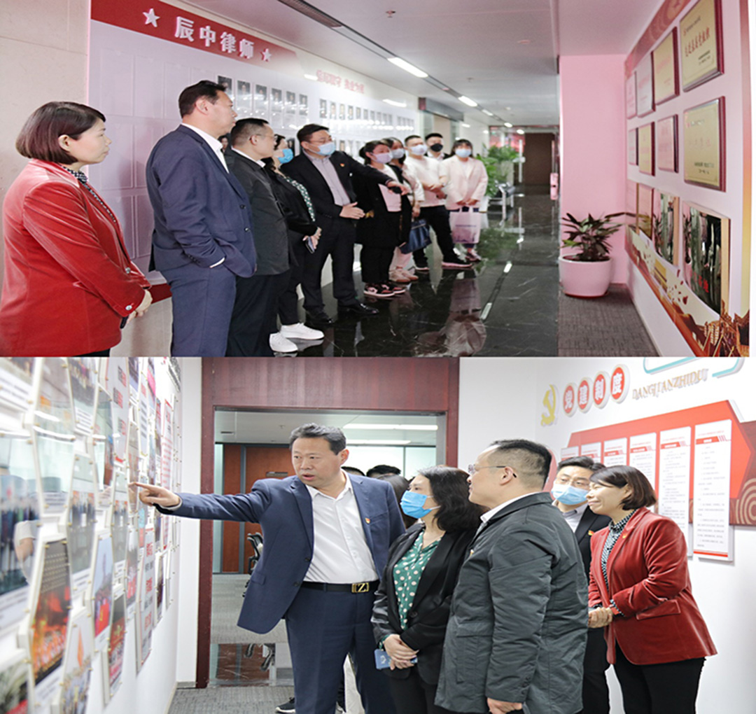 杨雷法处长一行在支合主任的带领下参观了辰中所党建活动室、律师执业办公场所、业务洽谈区、档案室、财务室、荣誉展示墙及党建文化长廊。