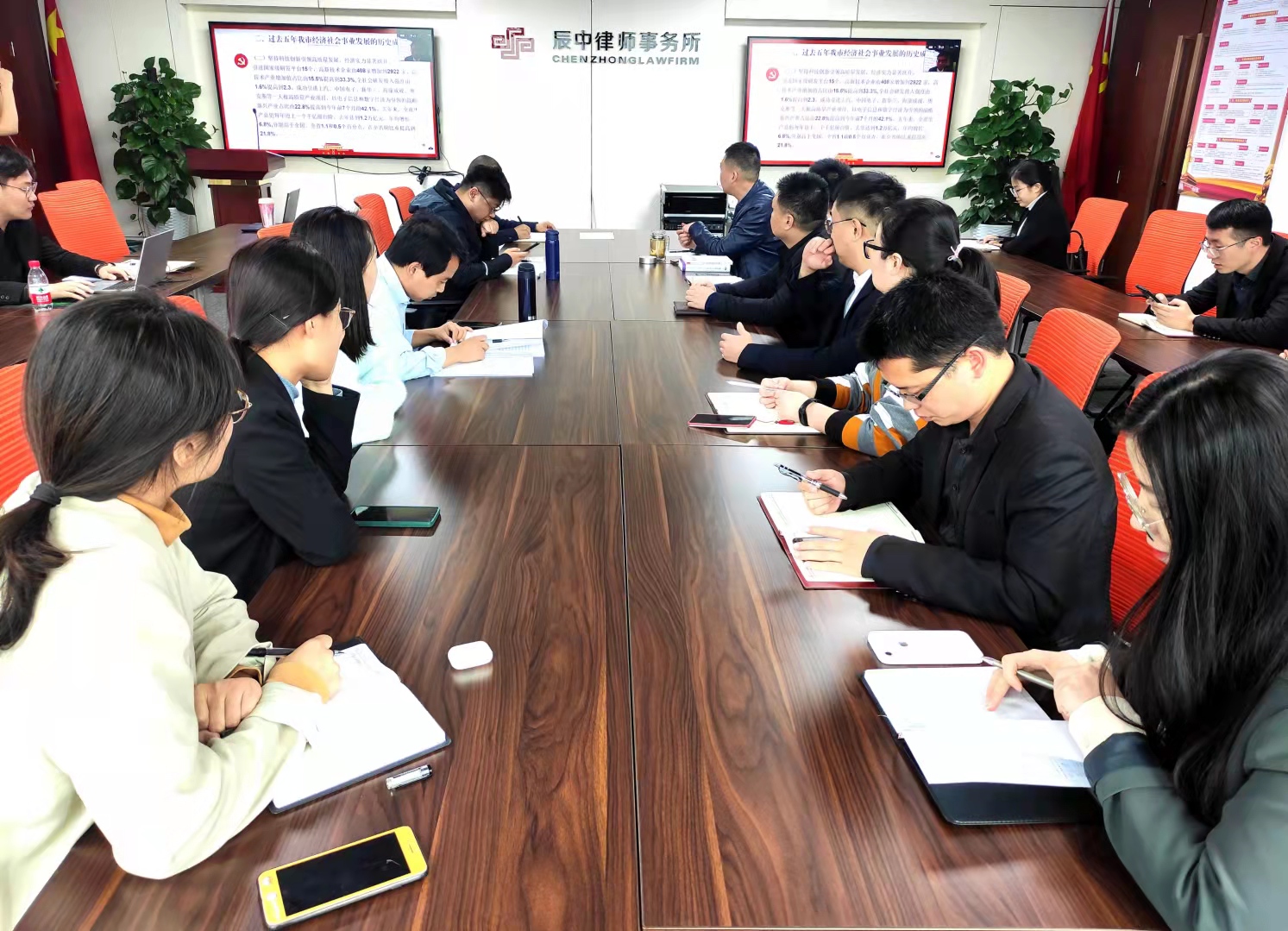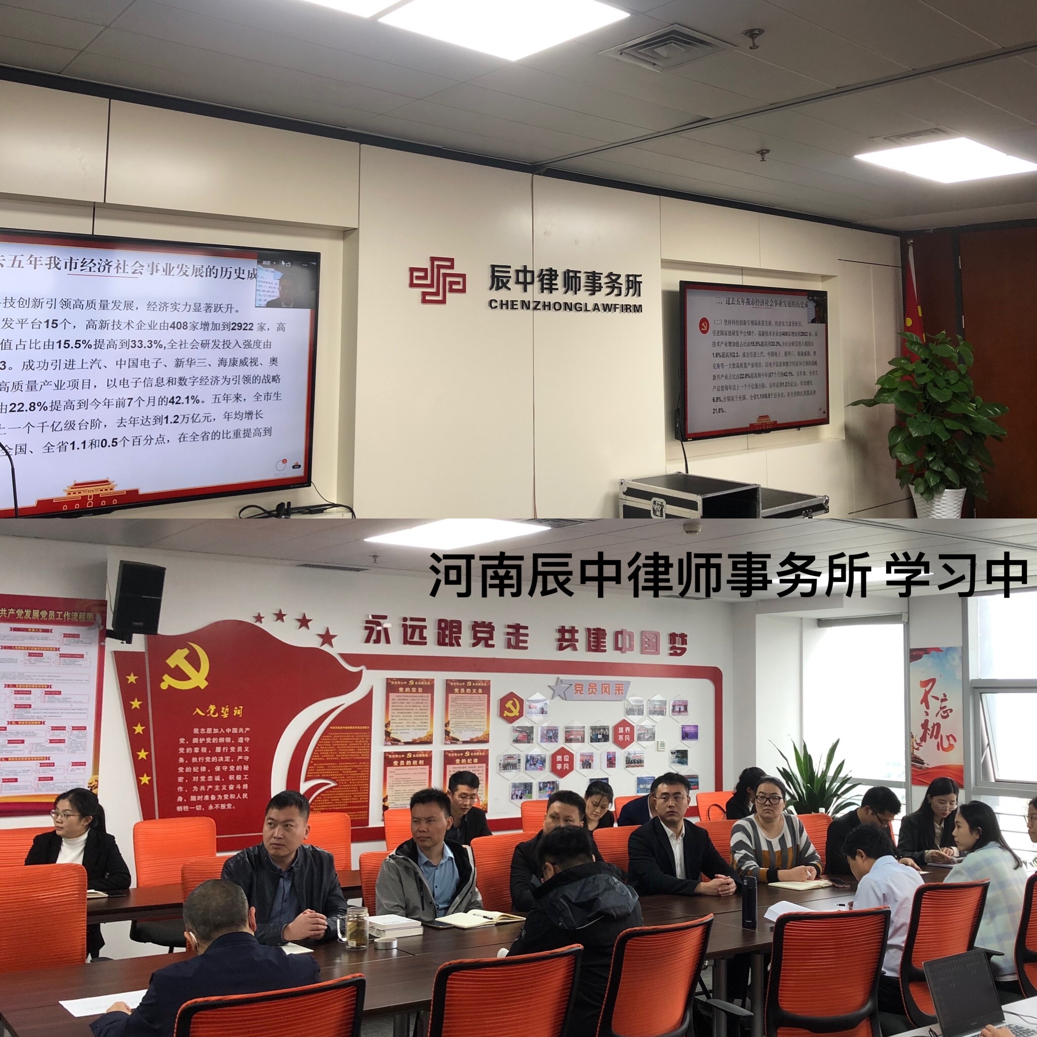 2021年10月15日,郑州市律师协会郑州市律师行业党委以现场讲授和线上直播的形式举办了《学习贯彻郑州市第十二次党代会精神宣讲活动。辰中所党支部书记王宇同志现场参加会议,其他律师在律师之家通过观看网上直播进行学习。