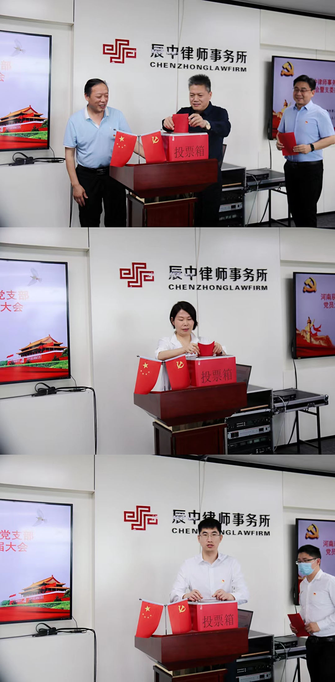 大会表决通过了选举办法、候选人名单、监票人及计票人名单等,并进行了党支部委员选举。全体党员按照无记名投票、差额选举的方式进行选举,最终选出马德方、田锐、李飞、杨琛、栗凯(按姓氏笔划排列)五位党员律师组成辰中所党支部新一届支部委员会。