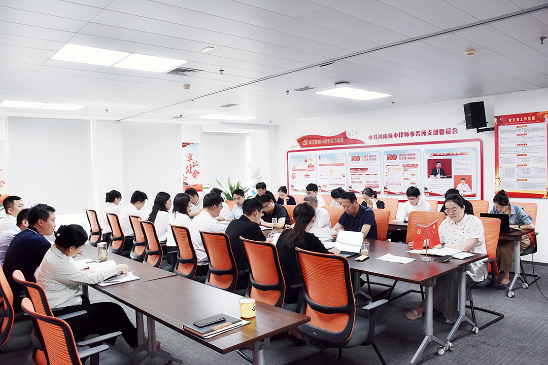 2022年8月5日下午,中共河南辰中律师事务所支部2022年第三季度党员大会在辰中党员之家召开,这也是辰中党支部于2022年5月24日完成支委会换届选举后组织召开的第一次全体党员大会。本次会议由党支部书记杨琛主持,支部党员、预备党员、发展对象、入党积极分子等40余名同志参加了会议。