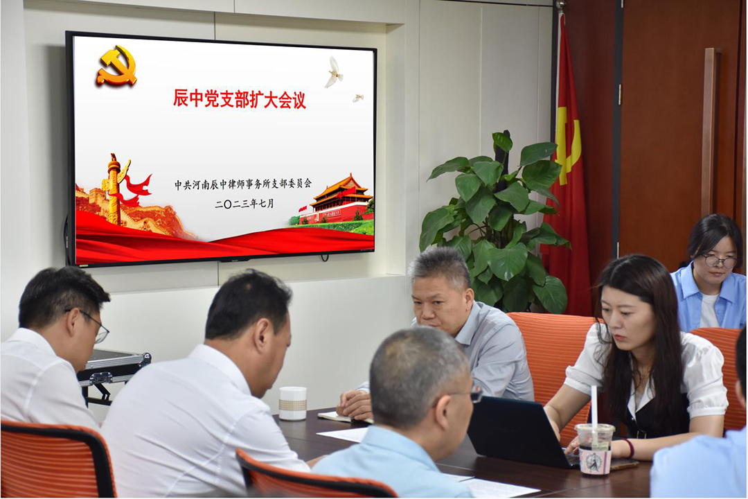 2023年7月7日上午,河南辰中律师事务所党支部扩大会议在辰中党员之家召开。本次会议由党支部书记杨琛主持,全所律师通过线上或线下方式参加了会议。