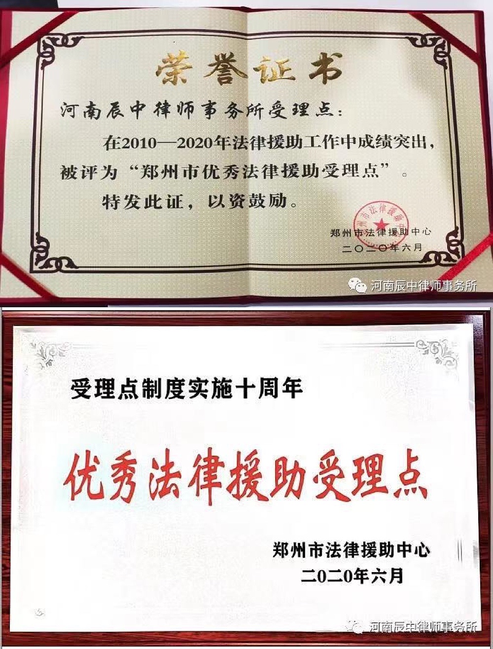 辰中所荣获“郑州市优秀法律援助受理点”称号
