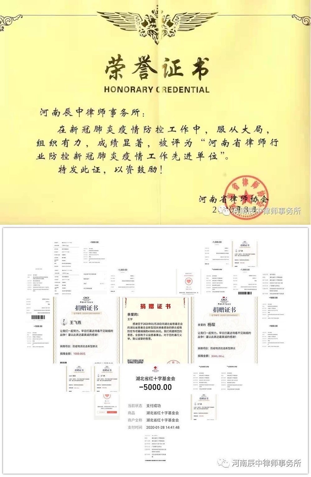 辰中所凝聚全所同仁力量积极响应党中央及各级党组织的号召,积极参与各级司法行政机关及律师协会开展的公益活动并自行组织形式多样的公益活动。